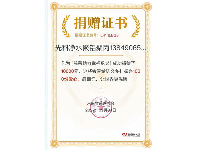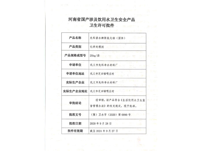 鞏義市先科凈水材料廠20多年來始終以凈化水源,造福人類為己任,2011年收購鞏義市興龍凈水材料廠投資4000萬建設導熱油鍋爐生產線2條,噴霧干燥塔2座成為目前國內外較大的無機凈水材料生產企業(yè)。有職工50余名,年產各種凈水材料5萬噸,產值上億。本企業(yè)生產的主要產品有聚合氯化鋁,聚氯化鋁,聚合硫酸鐵,堿式氯化鋁,聚丙烯酰胺(陰,陽,非離子)……